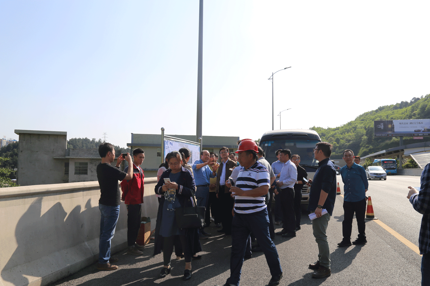 隨后來(lái)到楊柳井立交對(duì)我們的生態(tài)袋綠化工藝進(jìn)行了解。